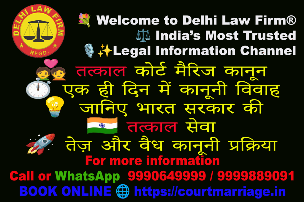 рдЖрдкрдХрд╛ рд╕реНрд╡рд╛рдЧрдд рд╣реИ Delhi Law Firm рдореЗрдВ тАФ рдЖрдкрдХреЗ рднрд░реЛрд╕реЗрдордВрдж рдХрд╛рдиреВрдиреА рд╕рд╛рдереА рдХреЗ рд░реВрдк рдореЗрдВ, рдЬреЛ рдкреВрд░реЗ рднрд╛рд░рдд рдореЗрдВ рдХреЛрд░реНрдЯ рдореИрд░рд┐рдЬ, рд╡рд┐рд╡рд╛рд╣ рдкрдВрдЬреАрдХрд░рдг рдФрд░ рдХрд╛рдиреВрдиреА рдЬрд╛рдЧрд░реВрдХрддрд╛ рд╕реЗ рдЬреБрдбрд╝реА рд╕реЗрд╡рд╛рдПрдБ рдкреНрд░рджрд╛рди рдХрд░рддрд╛ рд╣реИред